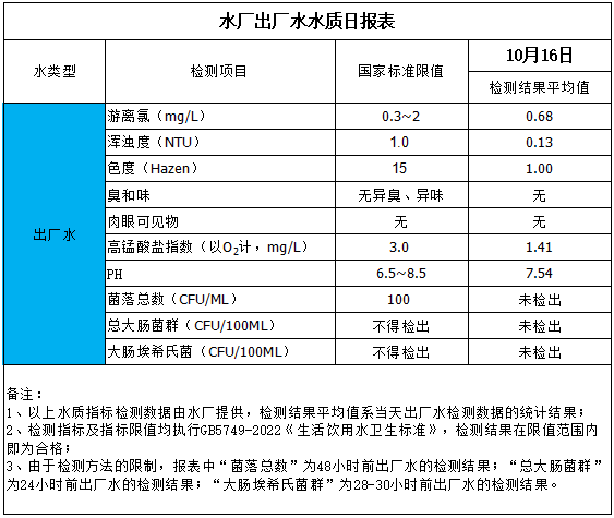 水廠出廠水水質(zhì)日?qǐng)?bào)表(2025-10-16)