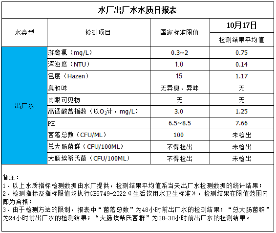 水廠出廠水水質(zhì)日報表(2025-10-17)