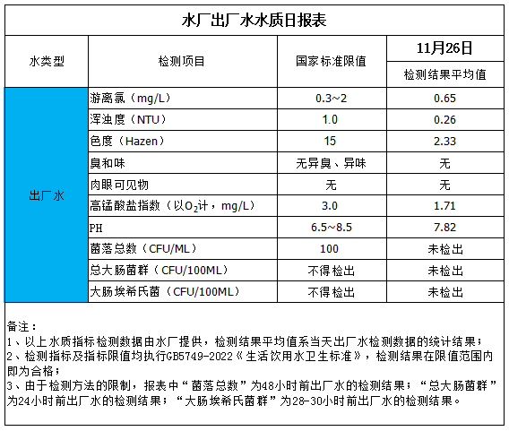 水廠出廠水水質(zhì)日報表(2025-11-26)