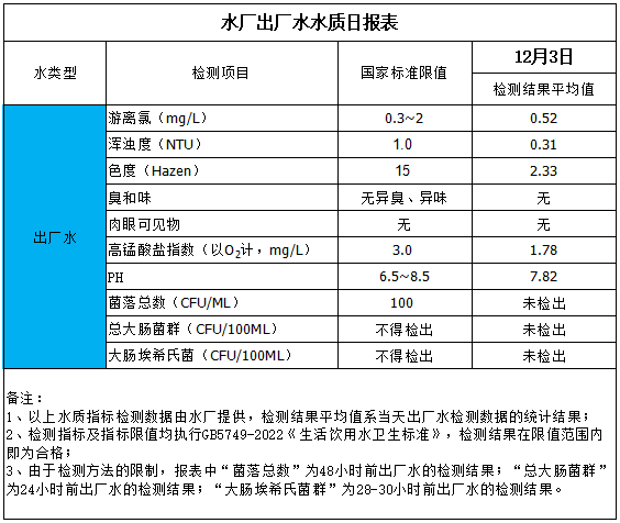 水廠出廠水水質(zhì)日報表(2025-12-3)