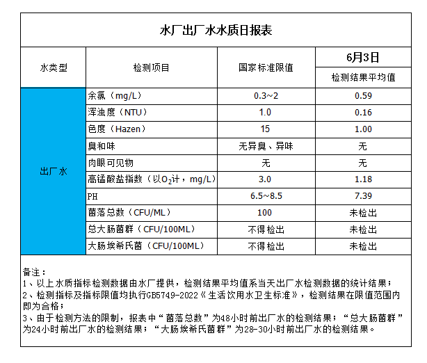 水廠出廠水水質日報表(2023-6-3)