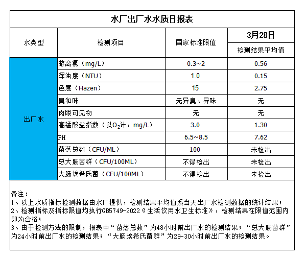 水廠出廠水水質(zhì)日報(bào)表(2024-3-28)